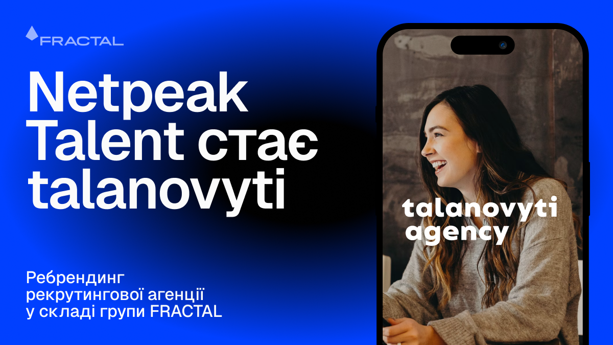 Група українських IT-компаній FRACTAL (ex-Netpeak Group) провела ребрендинг своєї рекрутингової агенції Netpeak Talent. Відтепер вона має назву talanovyti та стає самостійною компанією, яка спеціалізується на наймі для 50+ компаній зі сфер IT, miltech, e-commerce та креативних індустрій.