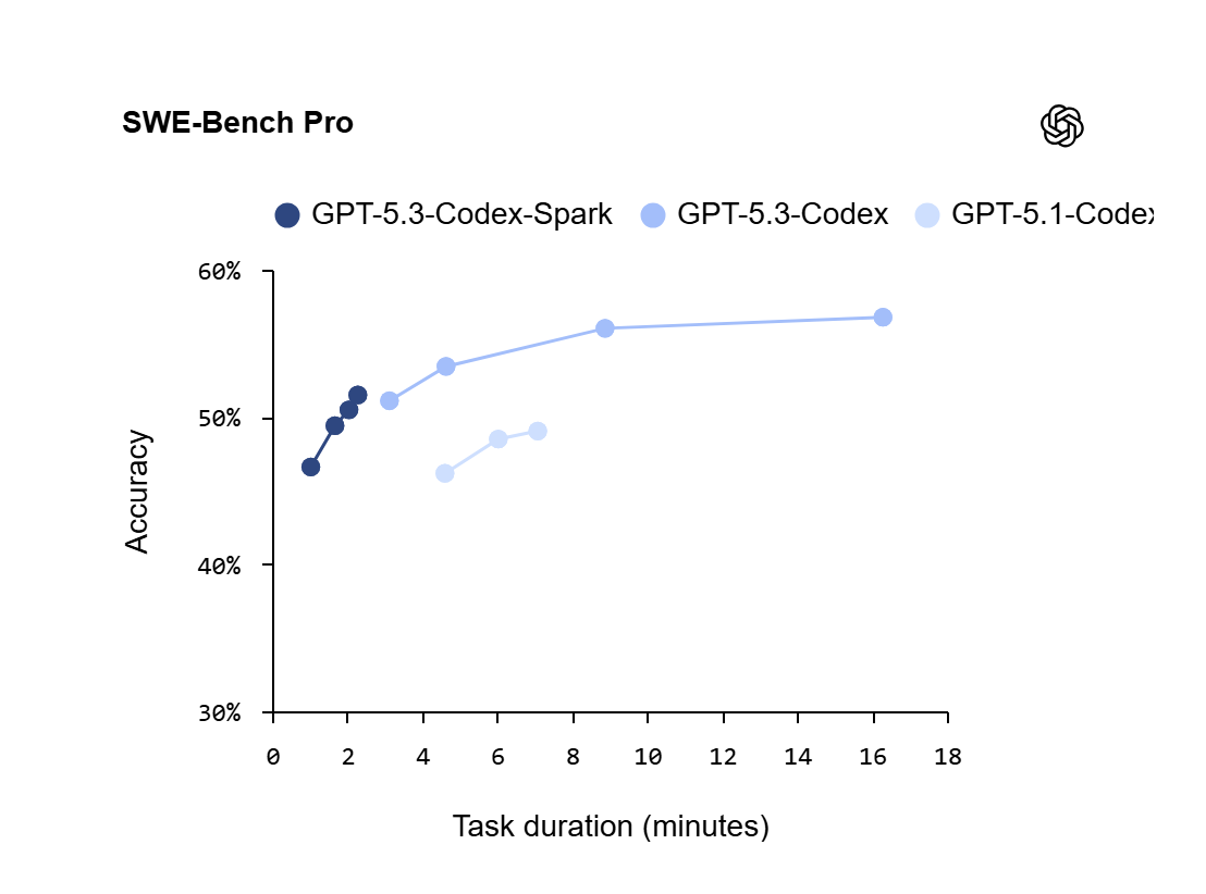 OpenAI представила дослідницьку preview-версію нової LLM-моделі GPT-5.3-Codex-Spark, яка є полегшеним варіантом GPT-5.3-Codex. За твердженням компанії, вона здатна генерувати код зі швидкістю більше 1000 токенів за секунду, що приблизно в 15 разів швидше, ніж у стандартної версії GPT-5.3-Codex.