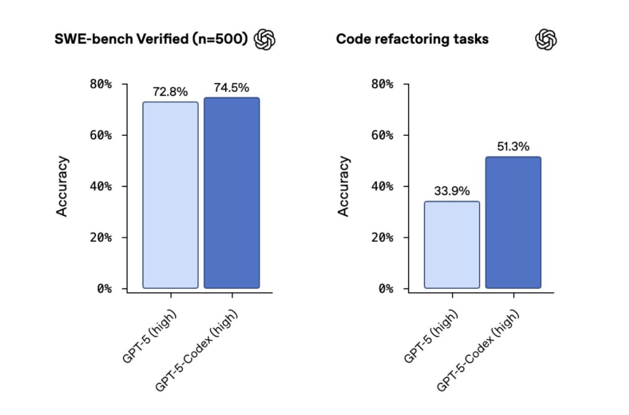 Якщо порівнювати новинку з GPT-5, то в бенчмарках SWE-bench Verified GPT-5 High набрала 72,8%, тоді як GPT-5-Codex — 74,5%. У завданнях рефакторингу коду нова модель отримала 51,3%, що значно вище за 33,9% у GPT-5.