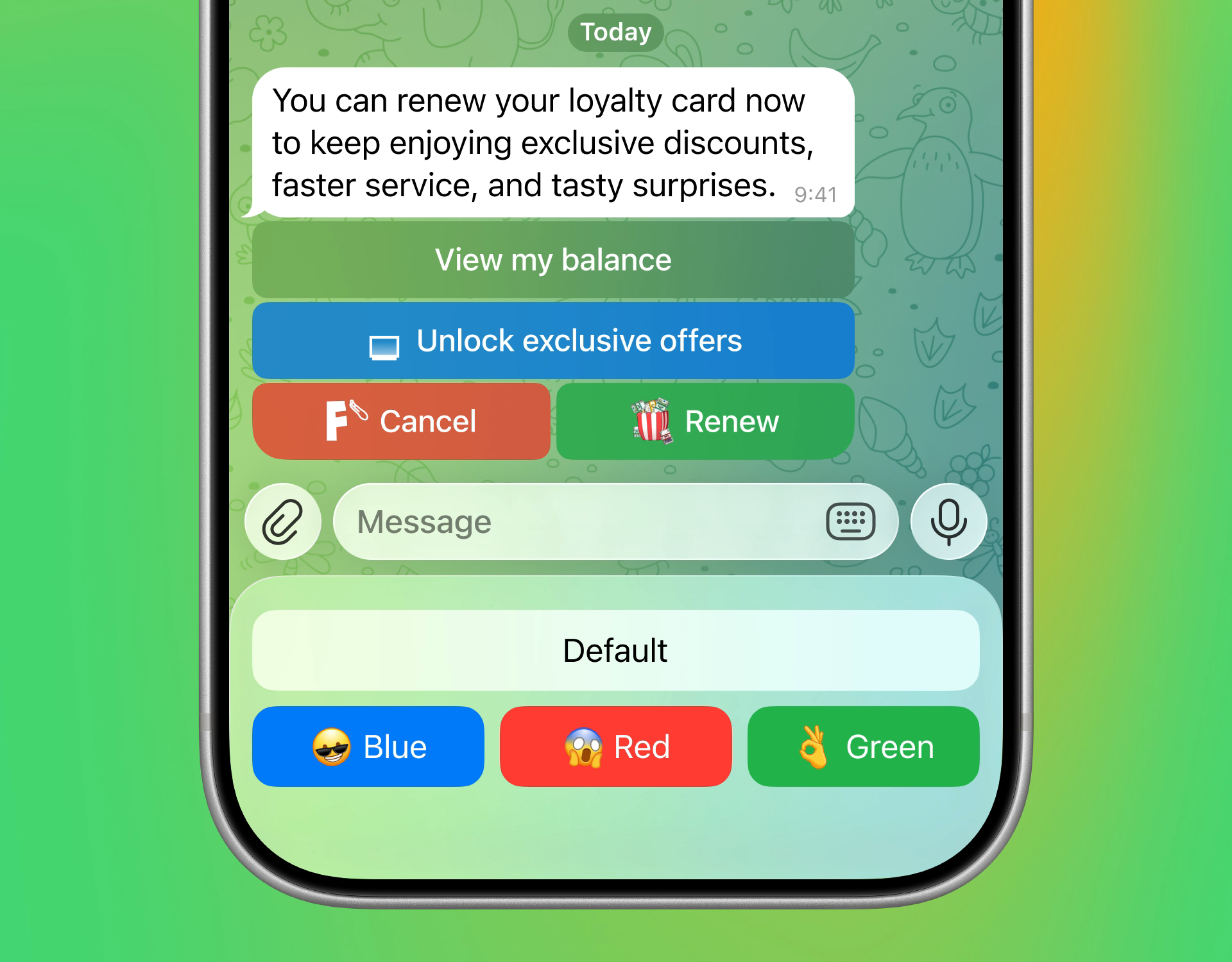Ще однією новиною стало те, що тепер розробники ботів у Telegram можуть призначати кольори та емоджі своїм кнопкам. Це дозволяє зробити інтерфейси більш зрозумілими та виділяти певні дії.