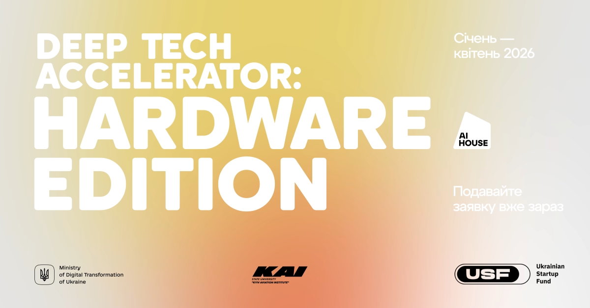 Некомерційна організація AI HOUSE розпочинає реєстрацію на Deep Tech Accelerator: Hardware Edition — non-equity програми для команд, які поєднують інженерне мислення, штучний інтелект і бажання створювати реальні продукти.